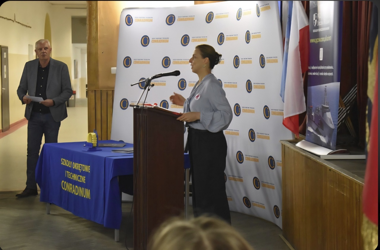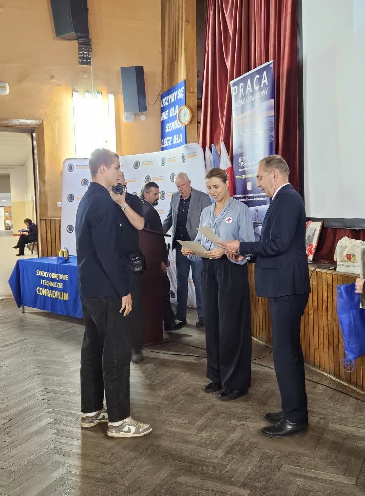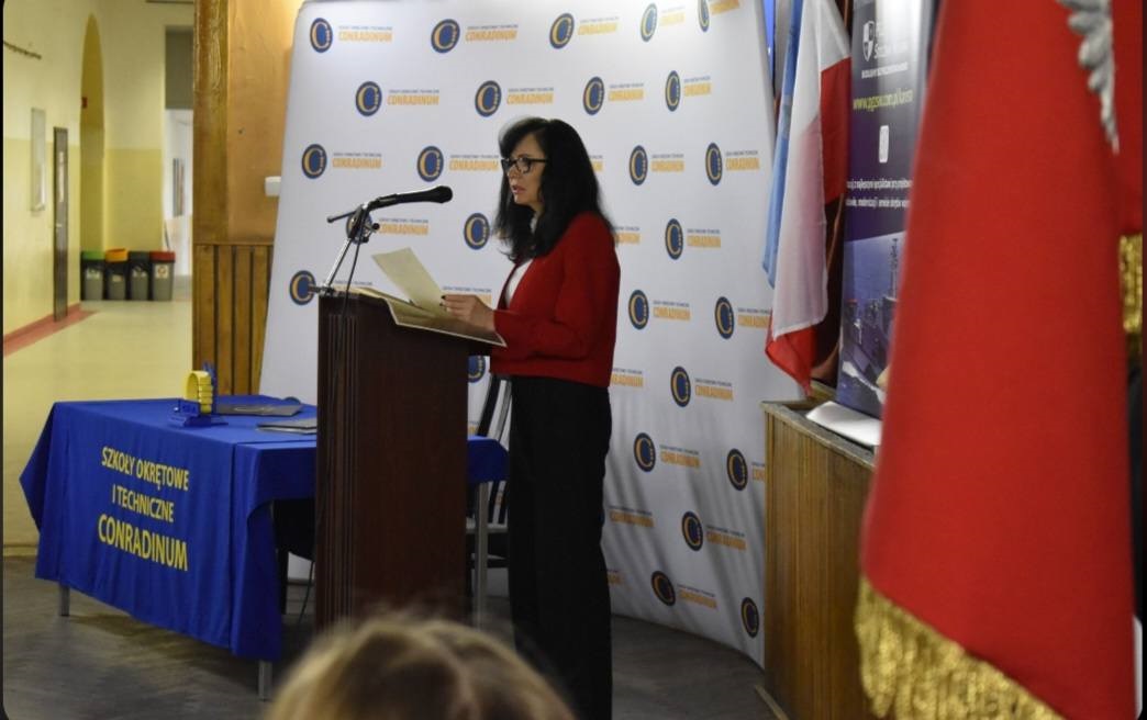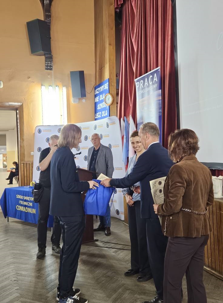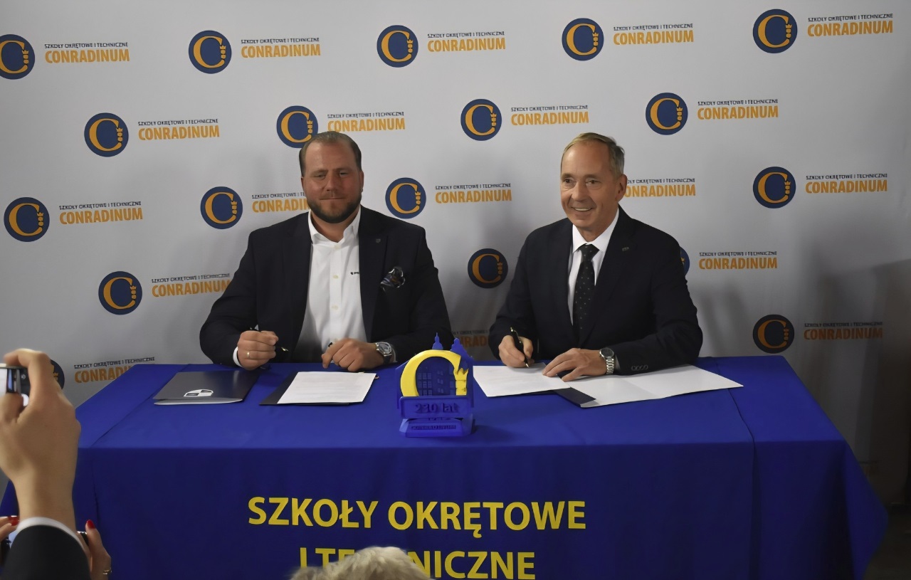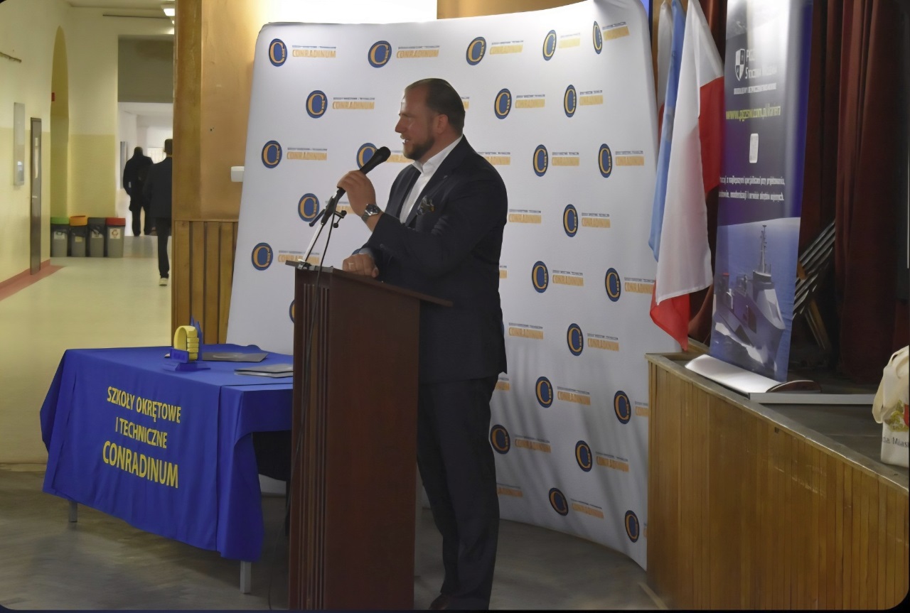 porozumienie w obecności gości i wszystkich klas pierwszych podpisali: w imieniu PGZ Stocznia Wojenna Prezes Zarządu p. Marcin Ryngwelski oraz w imieniu SOIT Conradinum p. Dyrektor Andrzej Butowski