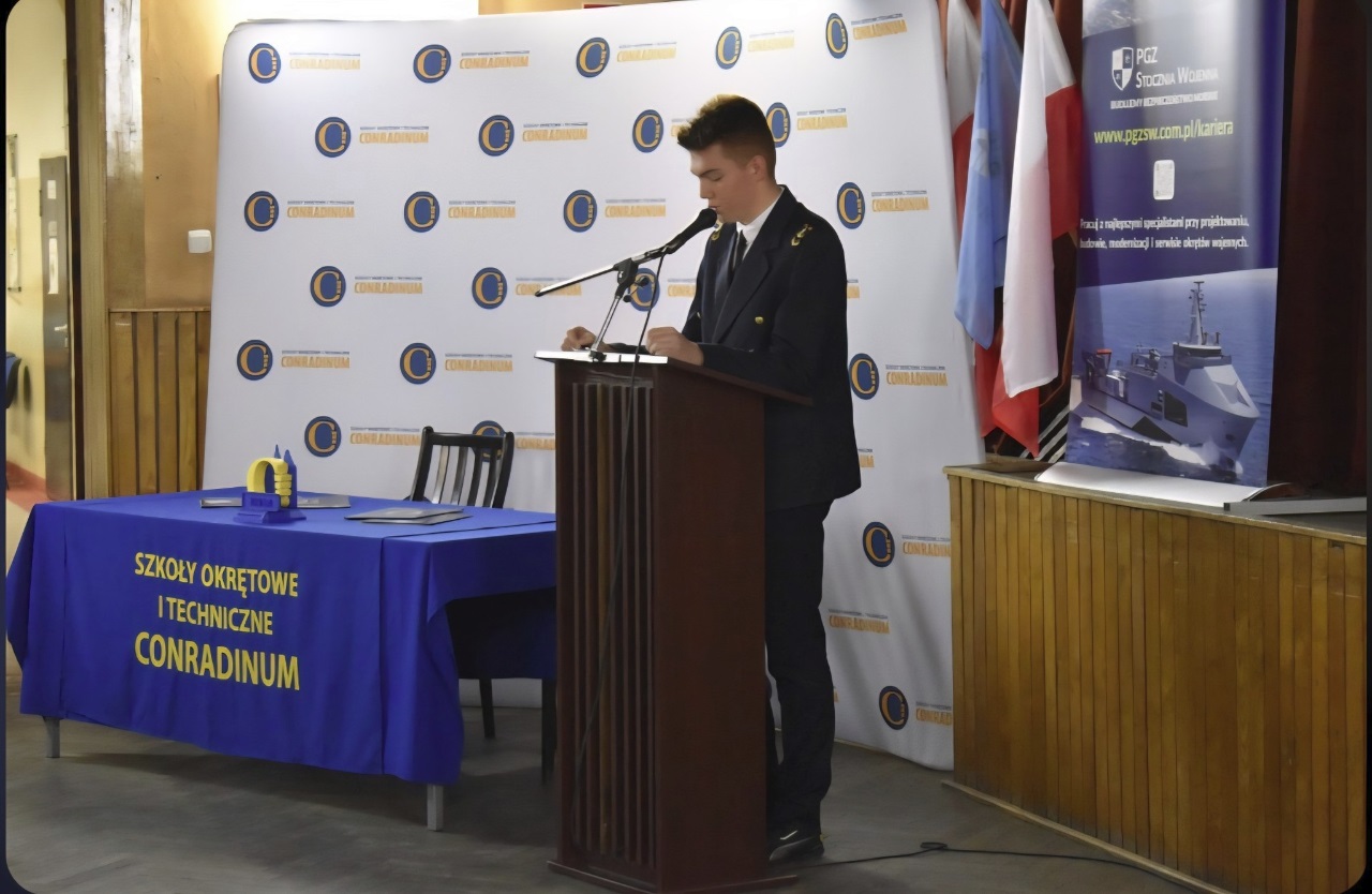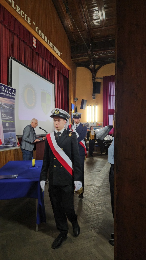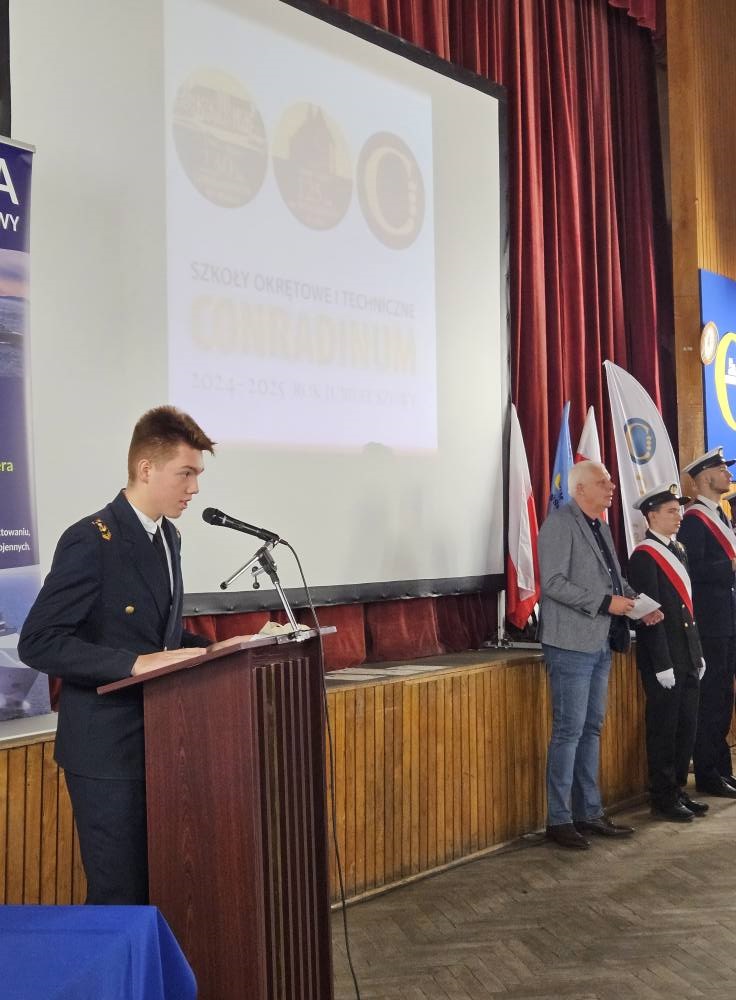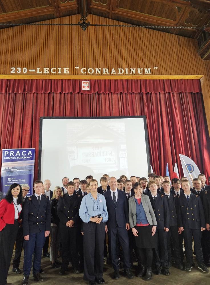 Pod okiem Dyrekcji SOiT Conradinum i wspólczesnego wcielenia naszego fundatora Karola Fryderyka Conradiego (w tej roli Kacper Sokołowski z kl. 4B) oraz w gronie szacownych gości p. Moniki Chabior - Wiceprezydentki Miasto Gdańsk Monika Chabior , p. Żanety Geryk - Radnej Miasta Gdańska Żaneta Geryk , p. Andrzeja Kowalczysa - Radnego Miasta Gdańska Andrzej Kowalczys Radny Miasta Gdańska , p. Aleksandry Prostak - Wydzial Edukacji, p. Marcina Ryngwelskiego- Prezesa Zarządu PGZ Stocznia Wojenna, p. Marcina Marca - Dyrektora HR PGZ Stocznia Wojenna, p. Anny Berg z PGZ Stocznia Wojenna - pierwszoklasiści złożyli ślubowanie, stając się Conradinowcami