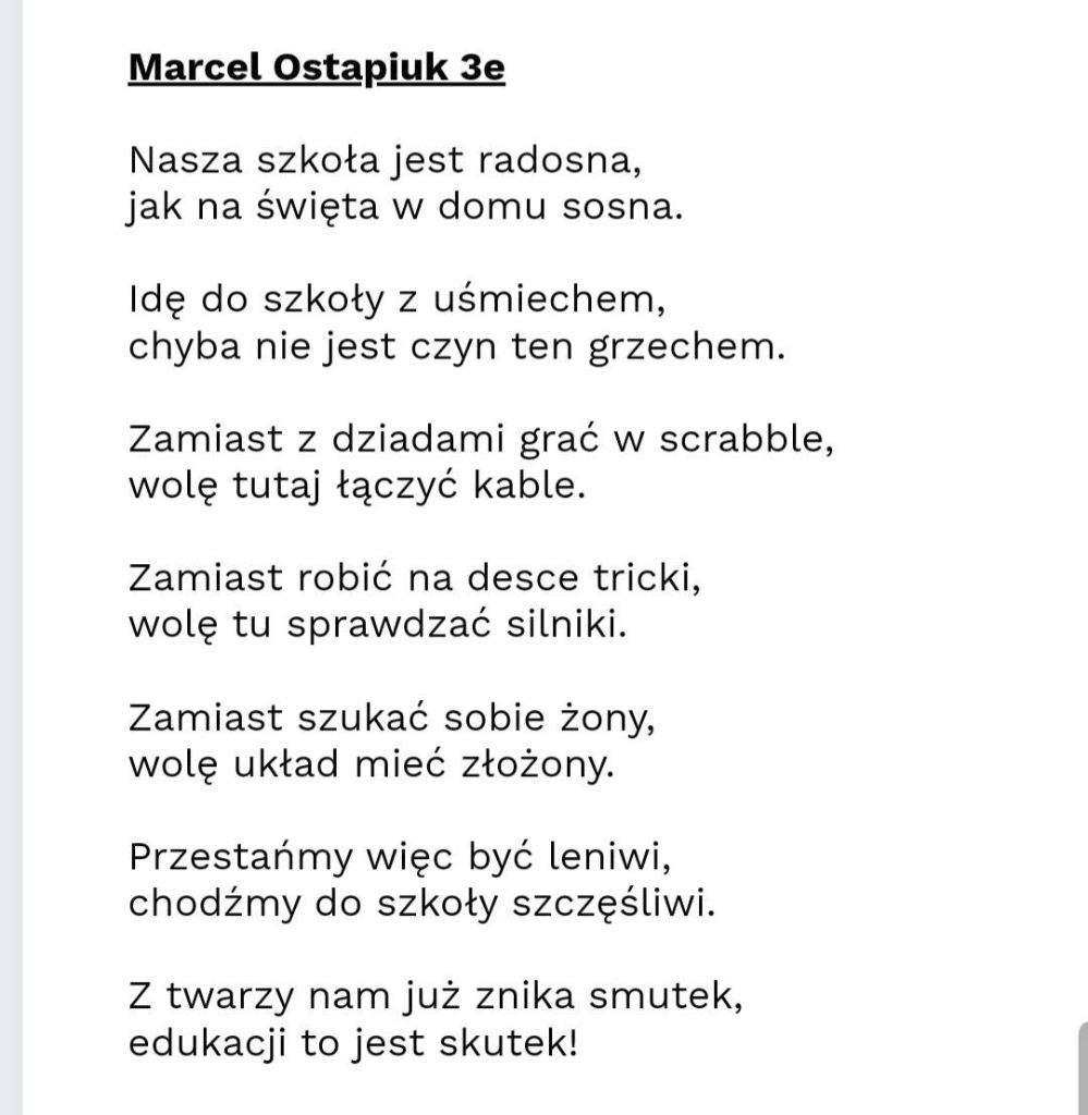 I miejsce - Marcel Ostapiuk z klasy 3 E, II miejsce duet Mateusz Nikel i Igor Sadowski z 3 Bme oraz III miejsce Franciszek Borna z klasy 4 L - gratulujemy