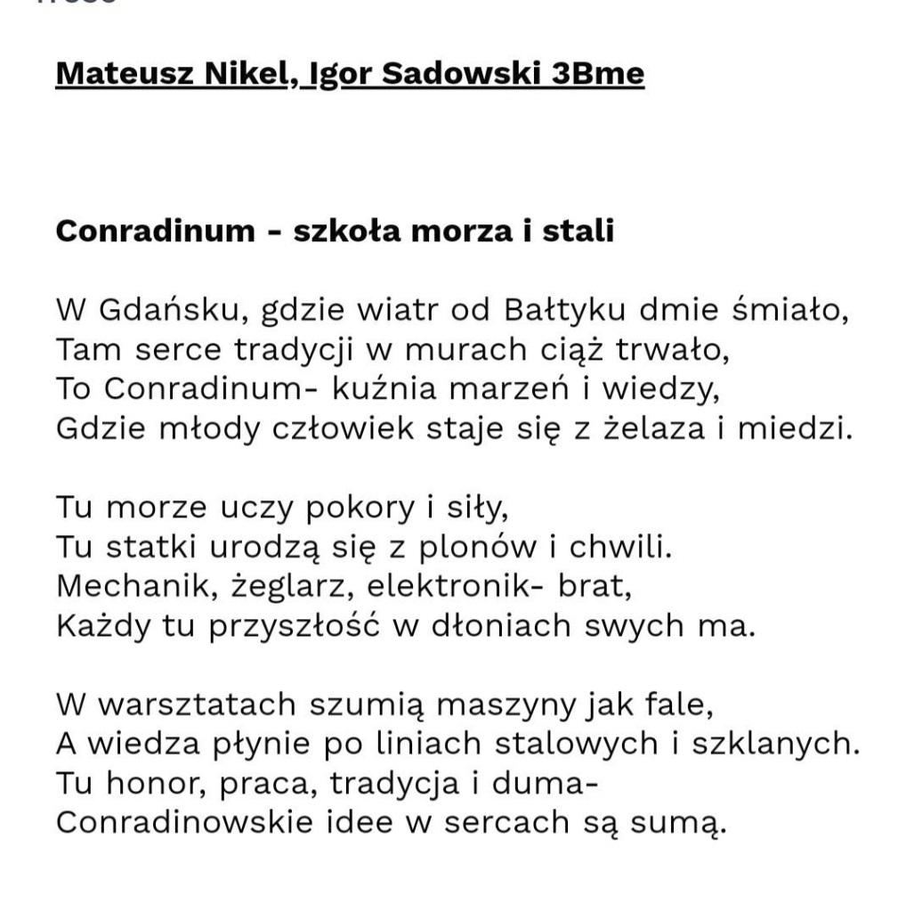 Wszak jak głosi tekst conradinowskiego hymnu "To my z Conradinum, z nas przyklad bierz I wzór"