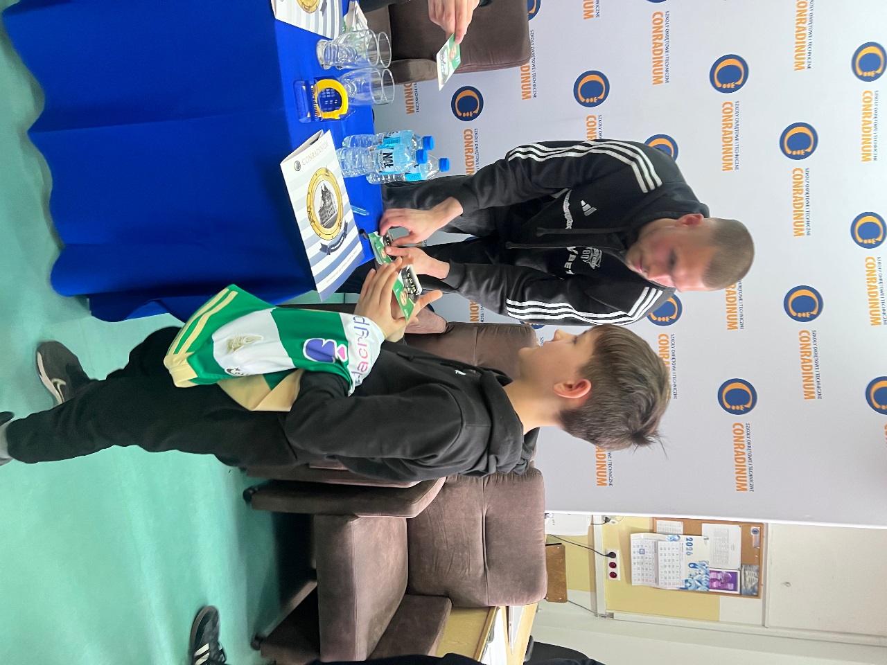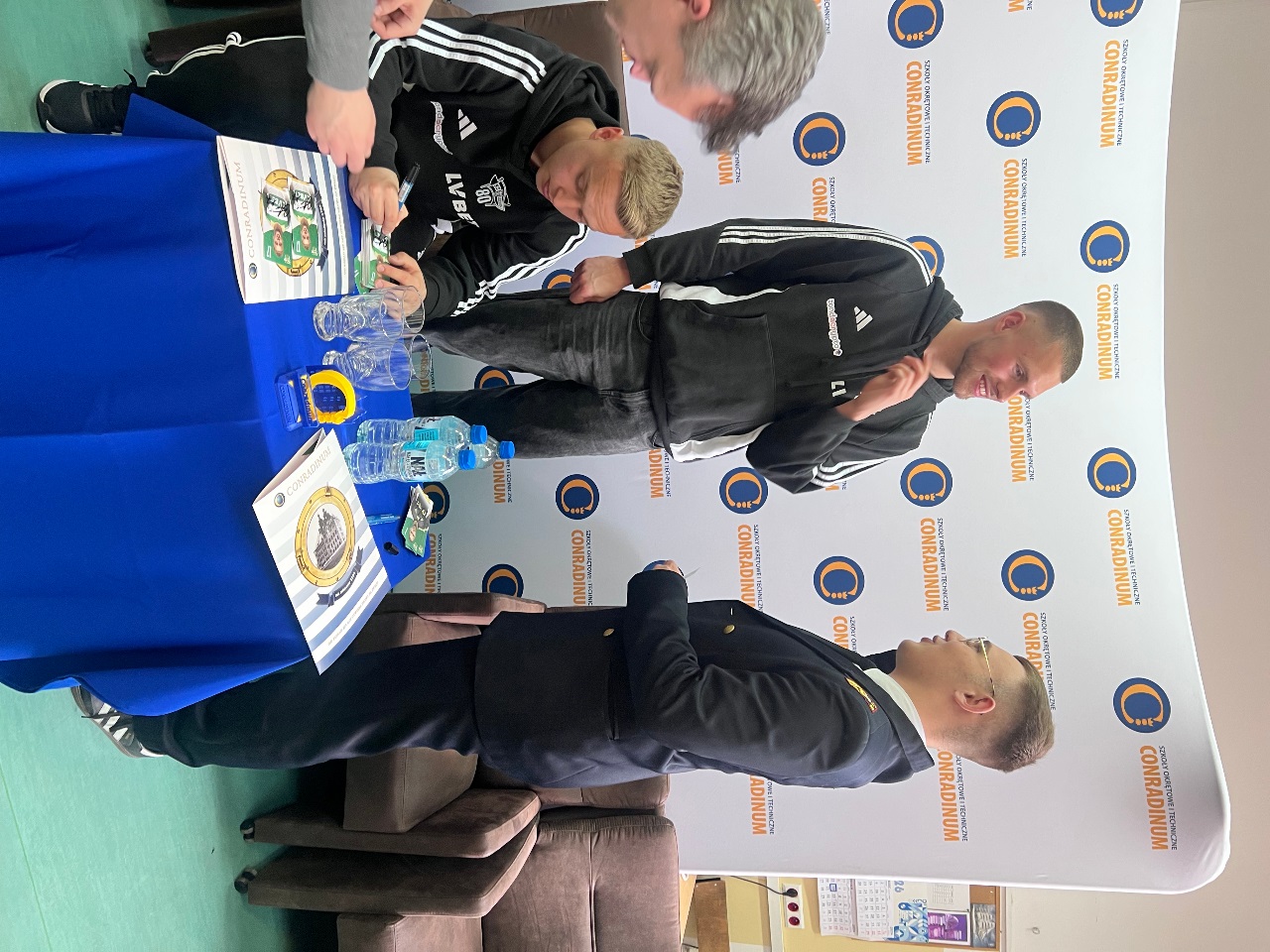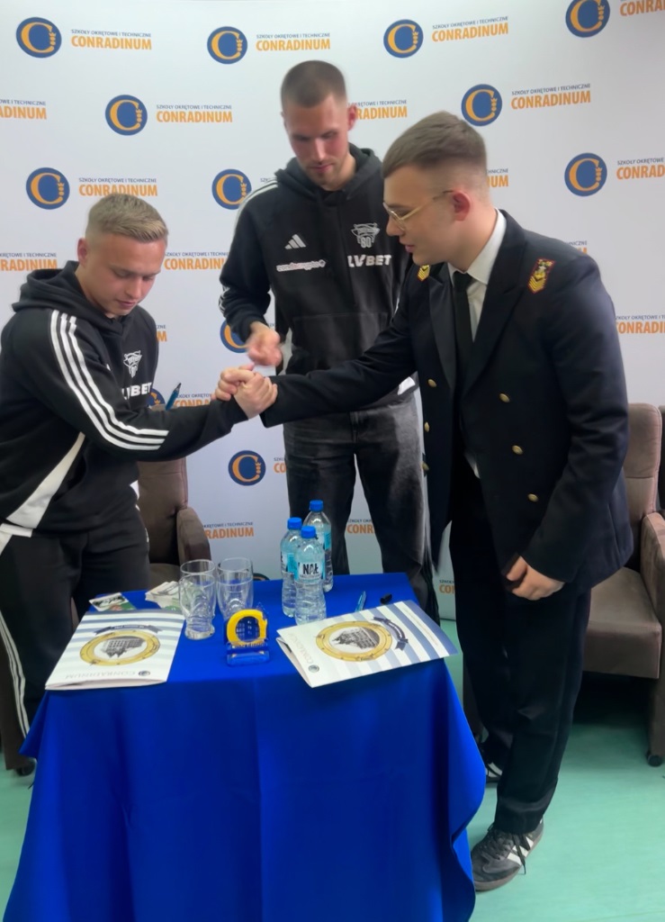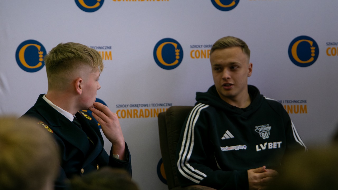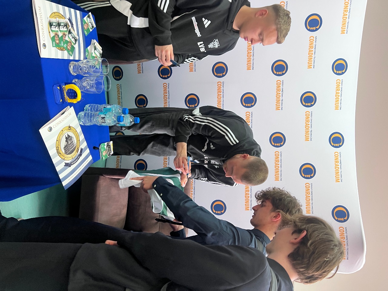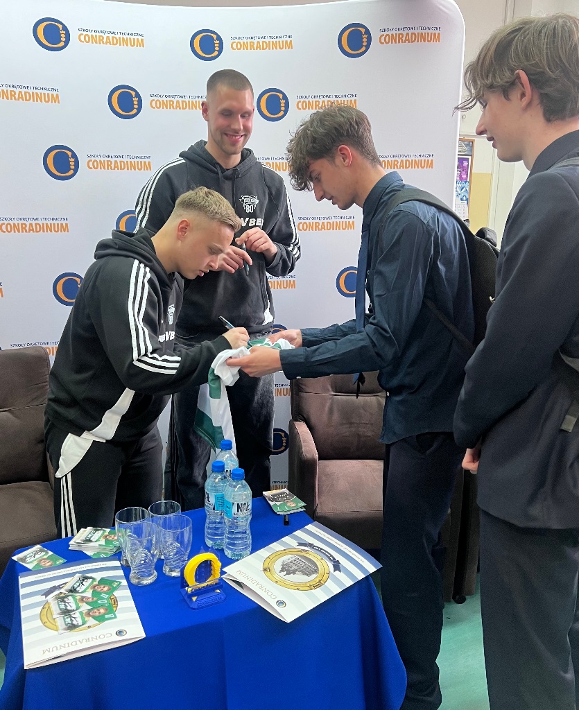 14 kwietnia w Conradinum gościliśmy piłkarzy KS Lechia Gdańsk – Szymona Weirauch i Antona Tsarenko. Spotkanie miało formę panelu dyskusyjnego prowadzonego przez Maksymiliana Bogiela z kl. 3A, wiceprzewodniczącego samorządu szkolnego oraz Oliwiera Niewiadomskiego z kl. 4B. To był godzina dla prawdziwych kibiców Lechii - padło wiele ciekawych pytań o sport, codzienność piłkarzy i drogę do kariery. Był również czas na wspólne zdjęcia i autografy.