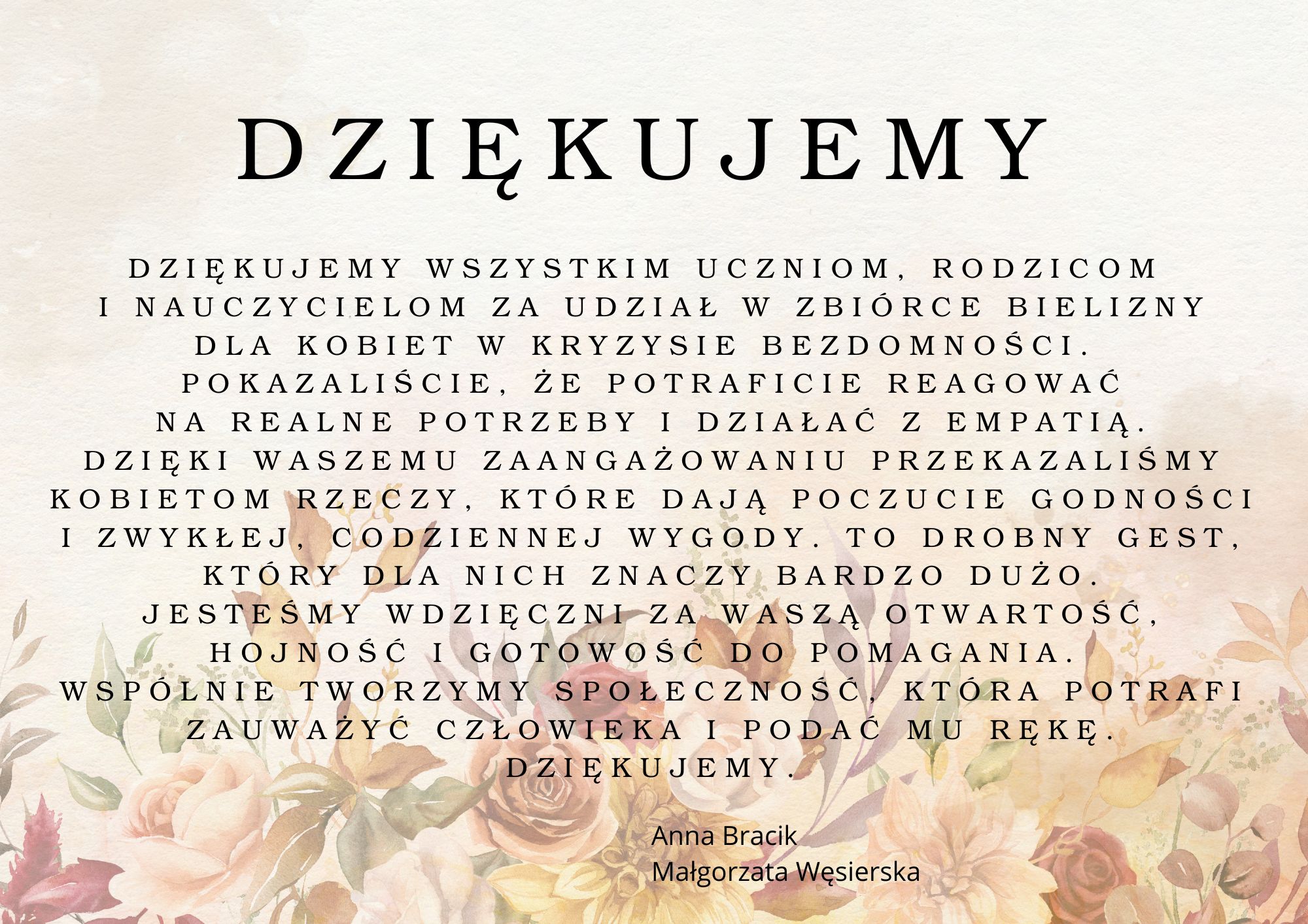 Podziękowanie za udział w akcji - Daj bracie gacie - Szkoły Okrętowe i Ogólnokształcące CONRADINUM (XVIII Liceum Ogólnokształcące, Technikum nr 18, Branżowa Szkoła I stopnia nr 18)
