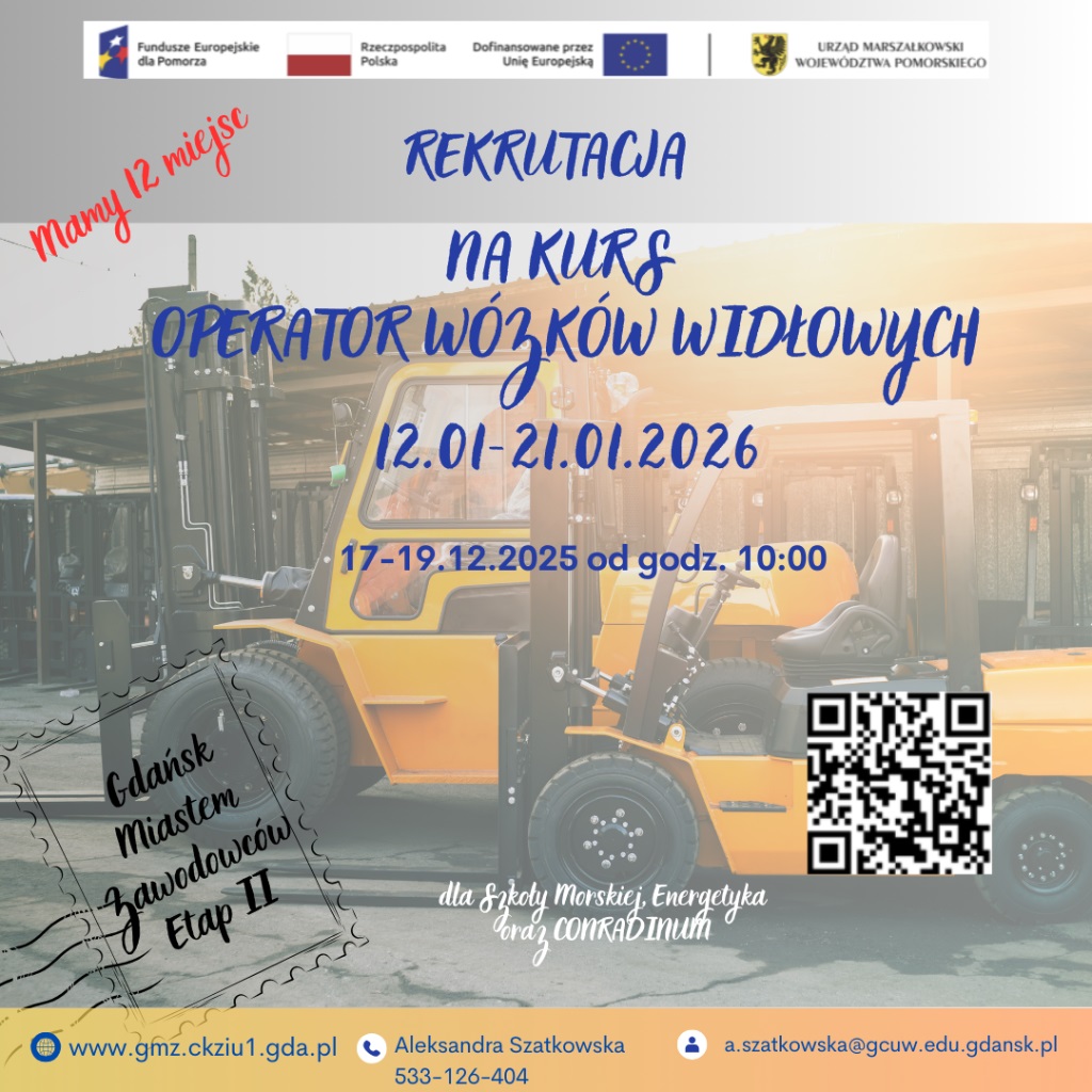 Rekrutacja na kurs: operator wózków widłowych - Szkoły Okrętowe i Ogólnokształcące CONRADINUM (XVIII Liceum Ogólnokształcące, Technikum nr 18, Branżowa Szkoła I stopnia nr 18)