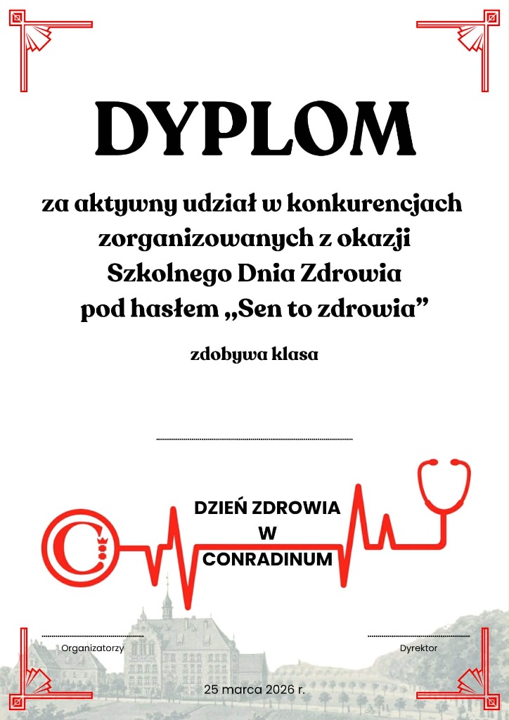 25 marca 2026 r., w ramach Dnia Zdrowia w Conradinum, odbył się Turniej dla Klas Pierwszych pod hasłem „Sen to zdrowie – każdy Ci to powie”.