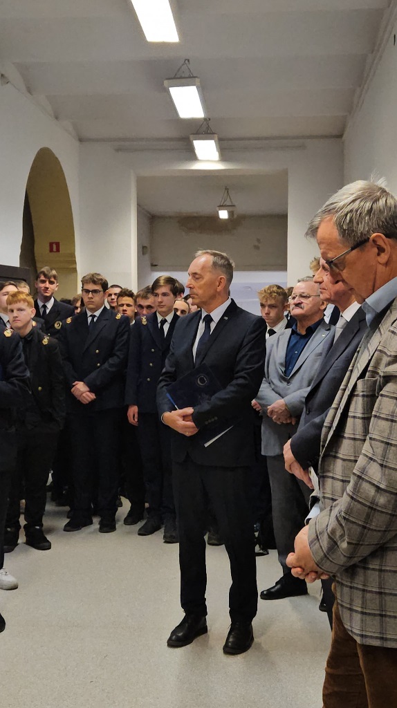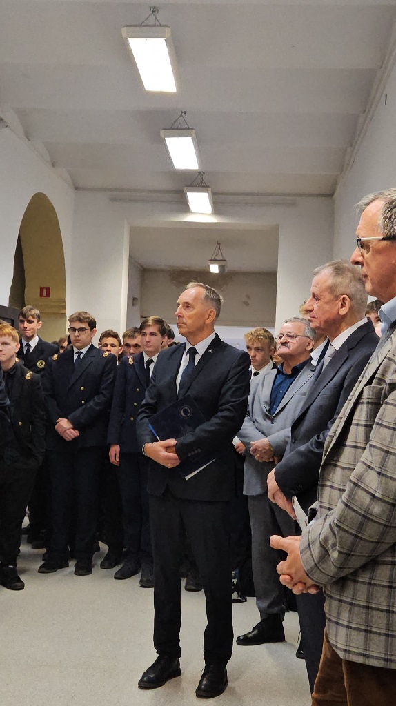 uroczystego odsłonięcia tablicy dokonali p. Aleksandra Prostak z Wydziału Edukacji, p. Ireneusz Karaśkiewicz - Dyrektor Forum Okrętowego, p. Piotr Bela - Prezes Stowarzyszenia Oświatowego "Conradinum" oraz Pan Dyrektor Andrzej Butowski