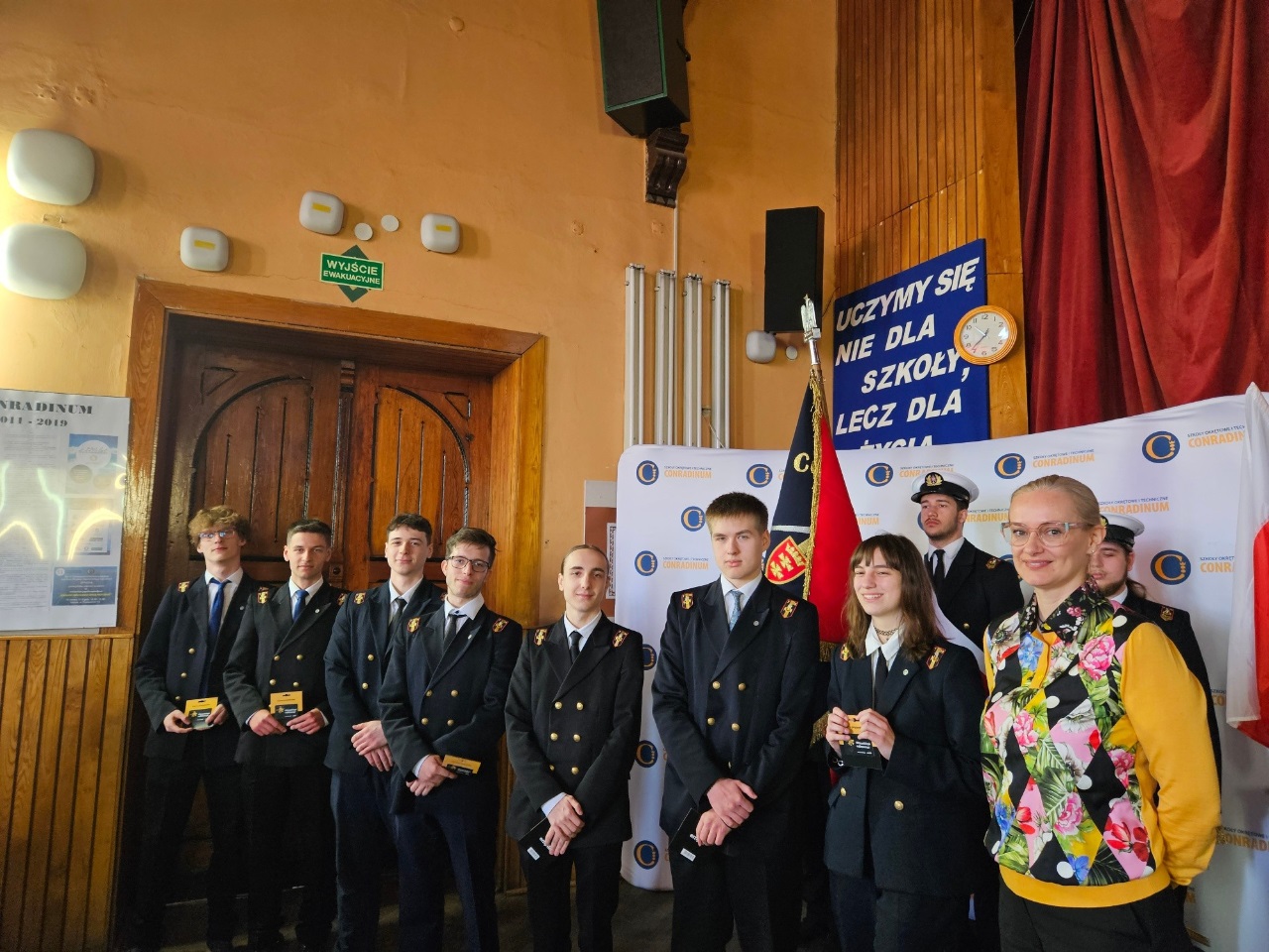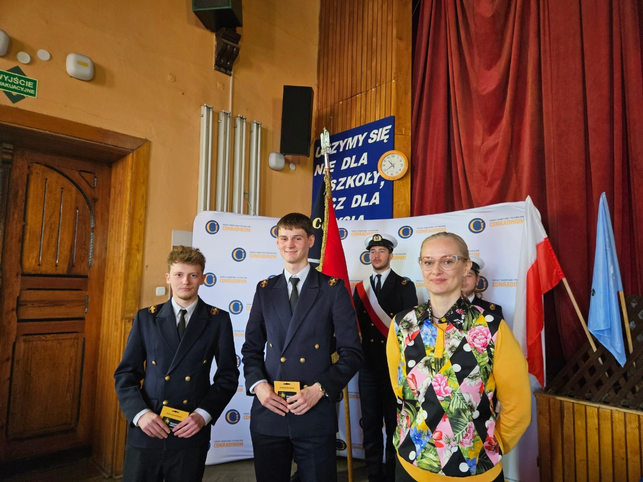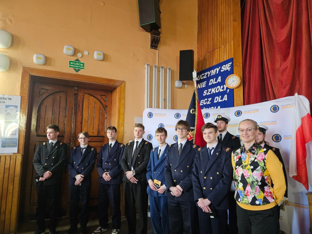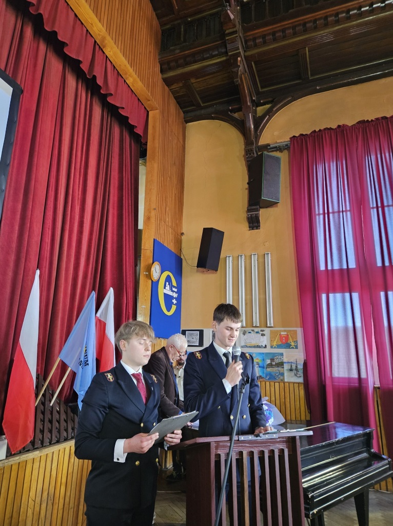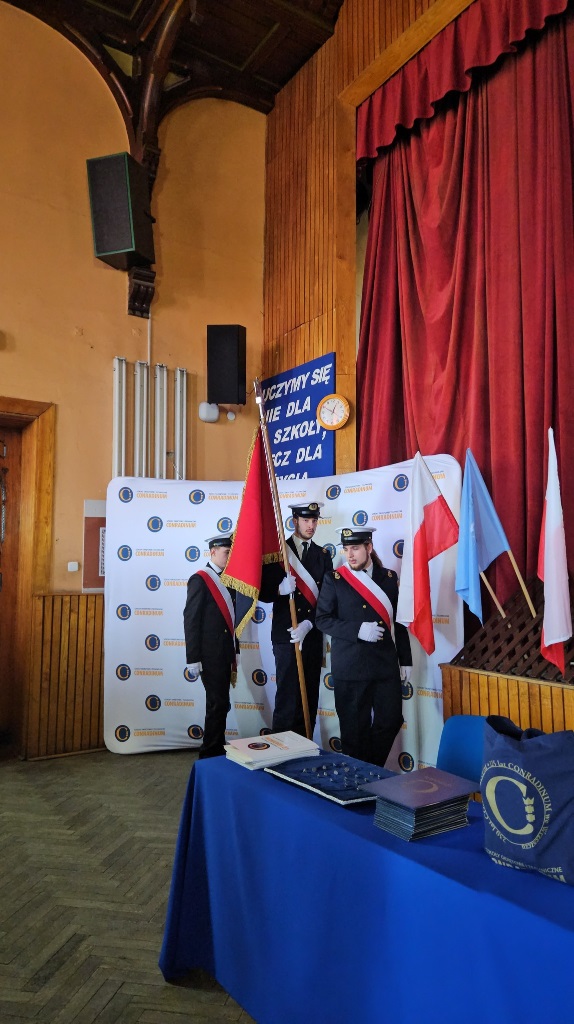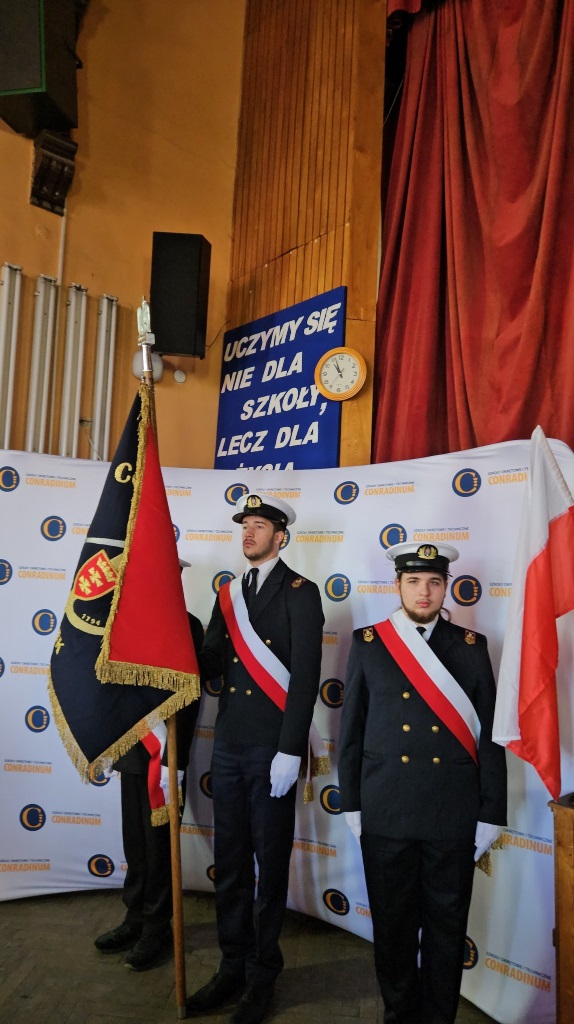 Po części oficjalnej nastąpiła część artystyczna - Kacper Sokołowski z kl. 4 B odczytał wiersz śp. kmdr. Marka Stysiaka - naszego nauczyciela fizyki i p.o. a następnie przyszedl czas na wysłuchanie 2 występów muzycznych uzdolnionych Conradinowców pod opieką p. Barbary Bech. Przed naszą wymagającą publicznością wystąpili: Paweł Aleksandrowicz z kl. 4 E - gitara i śpiew oraz ConraDuo, czyli Jagoda Szarmach 3 C i Aneta Nadstawna 3 D - śpiew (film z występów będzie można zobaczyć w rolkach i na naszym TT)