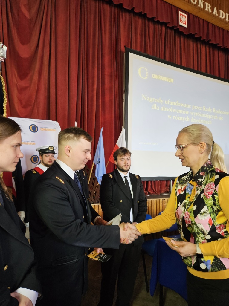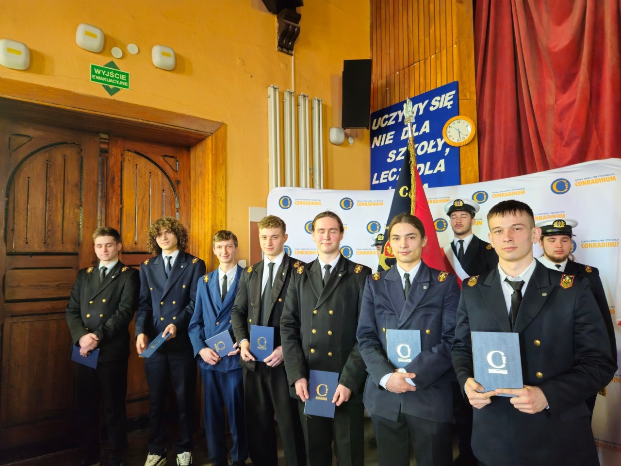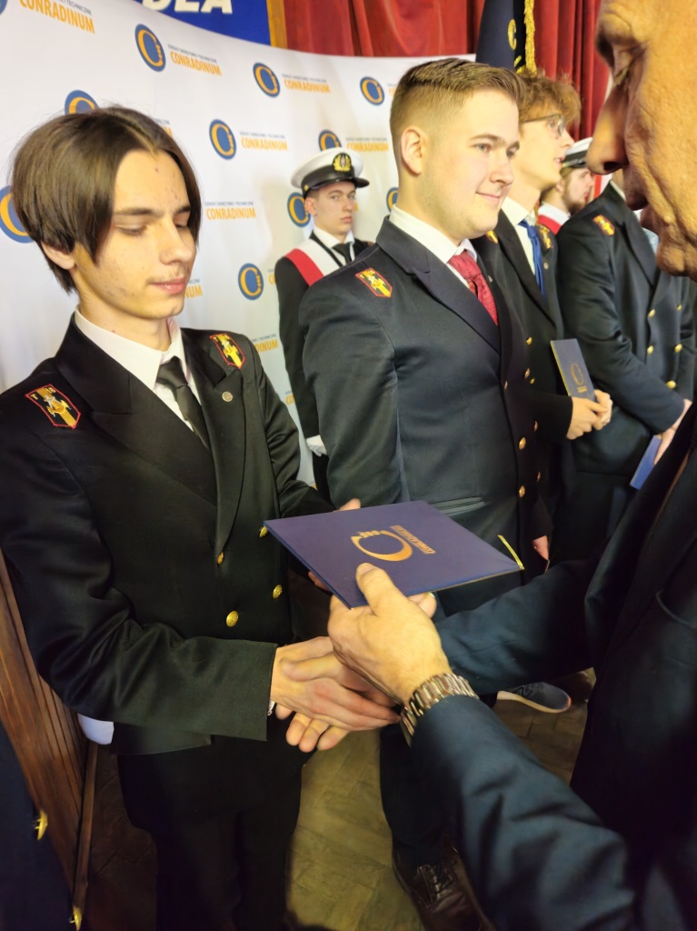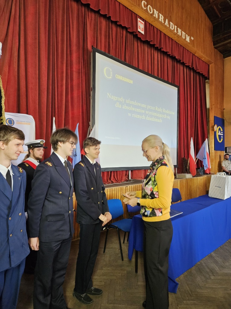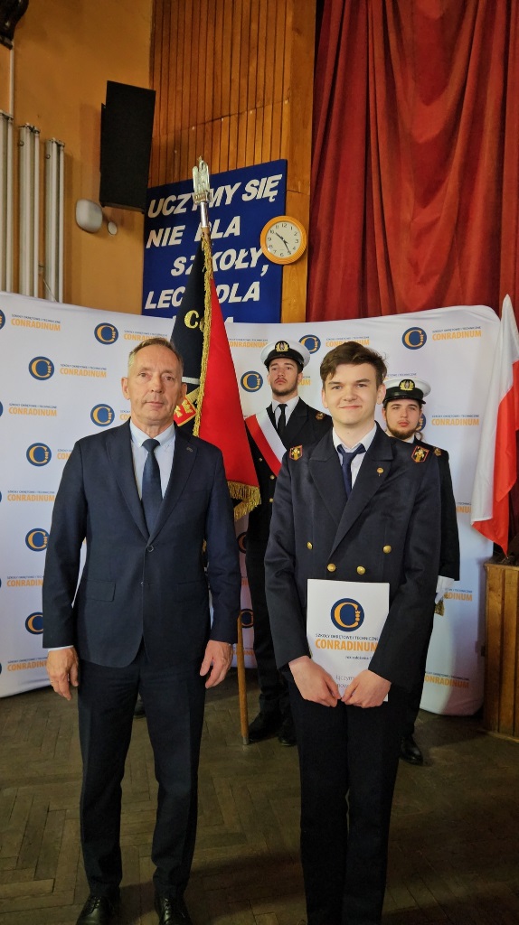 Po części oficjalnej nastąpiła część artystyczna - Kacper Sokołowski z kl. 4 B odczytał wiersz śp. kmdr. Marka Stysiaka - naszego nauczyciela fizyki i p.o. a następnie przyszedl czas na wysłuchanie 2 występów muzycznych uzdolnionych Conradinowców pod opieką p. Barbary Bech. Przed naszą wymagającą publicznością wystąpili: Paweł Aleksandrowicz z kl. 4 E - gitara i śpiew oraz ConraDuo, czyli Jagoda Szarmach 3 C i Aneta Nadstawna 3 D - śpiew (film z występów będzie można zobaczyć w rolkach i na naszym TT)