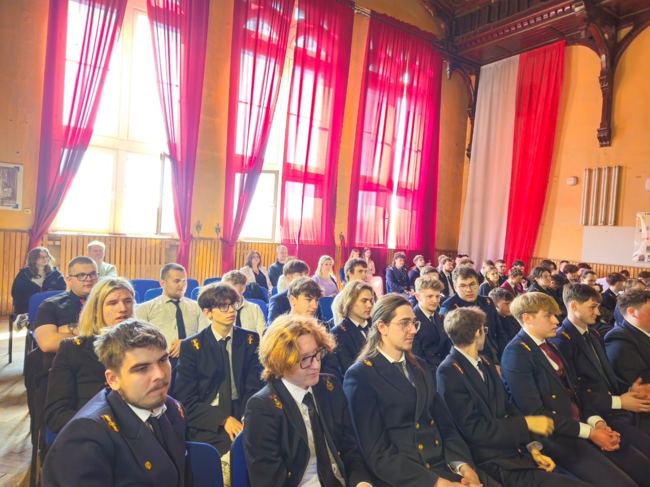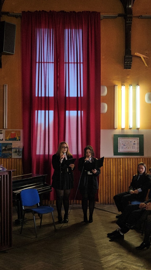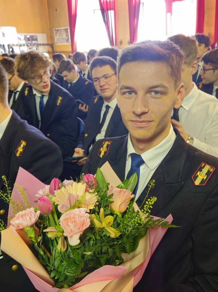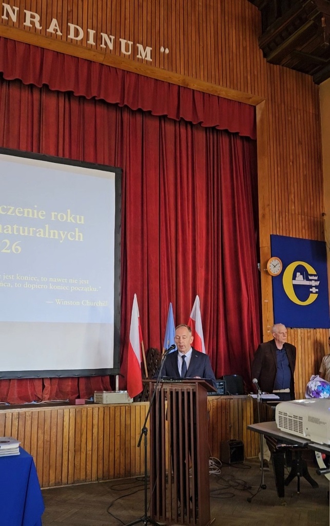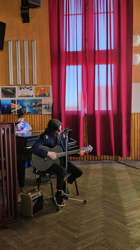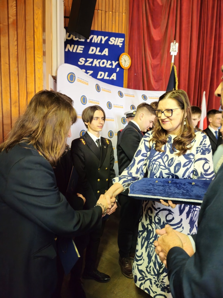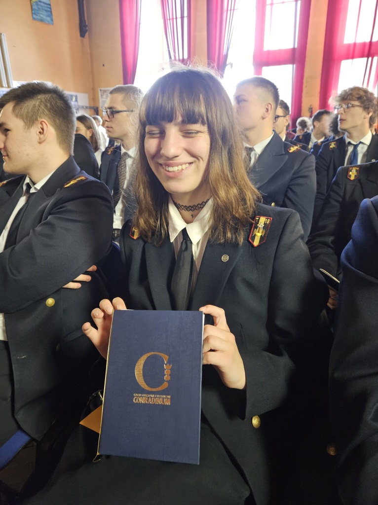 Po części oficjalnej nastąpiła część artystyczna - Kacper Sokołowski z kl. 4 B odczytał wiersz śp. kmdr. Marka Stysiaka - naszego nauczyciela fizyki i p.o. a następnie przyszedl czas na wysłuchanie 2 występów muzycznych uzdolnionych Conradinowców pod opieką p. Barbary Bech. Przed naszą wymagającą publicznością wystąpili: Paweł Aleksandrowicz z kl. 4 E - gitara i śpiew oraz ConraDuo, czyli Jagoda Szarmach 3 C i Aneta Nadstawna 3 D - śpiew (film z występów będzie można zobaczyć w rolkach i na naszym TT)