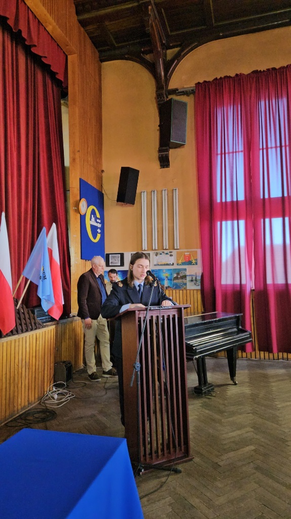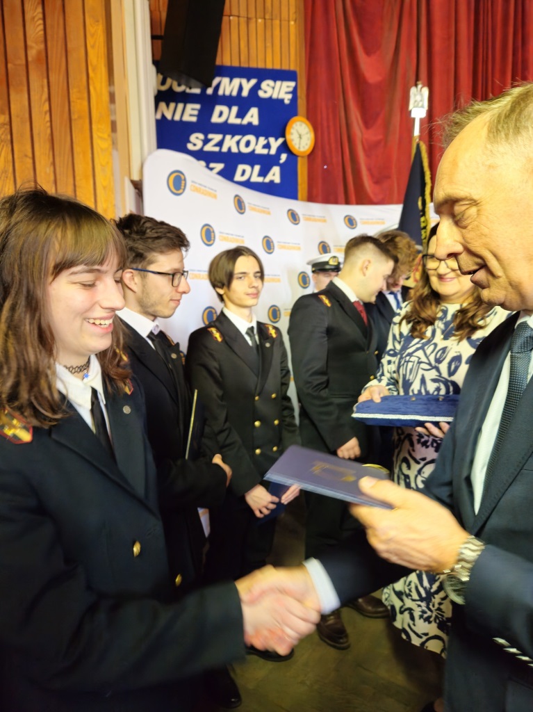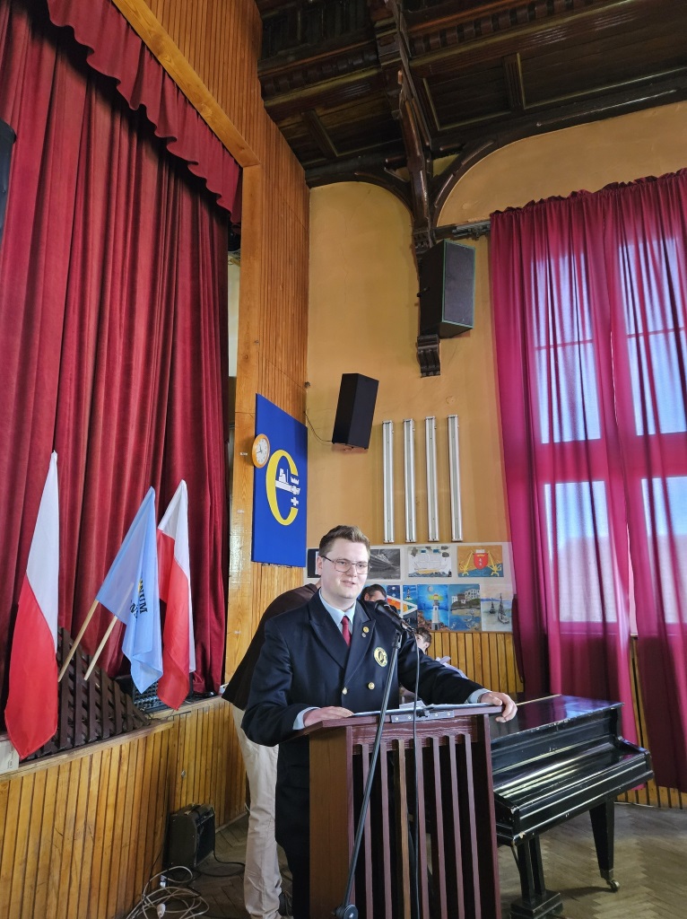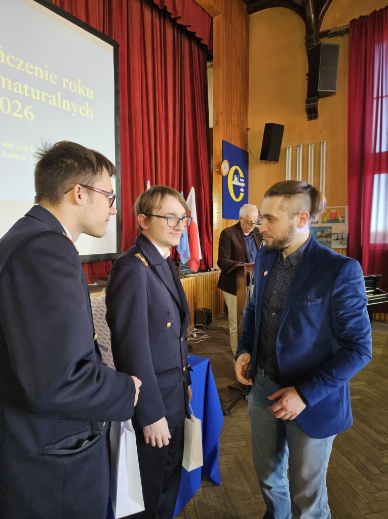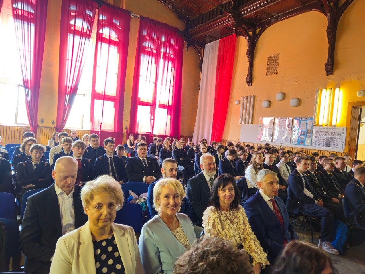 Wysłuchaliśmy przemówień: Pana Dyrektora Andrzeja Butowskiego, Przewodniczącej Rady Rodziców p. Joanny Ryngwelskiej, wystąpienia przewodniczącego Samorządu Szkolnego Marcela Fortasa z kl. 3A, tegorocznych absolwentów Igora Ryzy i Mateusza Chętnie z kl. 5 KE oraz przedstawicieli zaprzyjaznionych firm: p. Marka Marca Dyrektor HR PGZ Stocznia Wojenna, p. Michała Cisonia z Gdańskich Młynów oraz reprezentantow Koła Młodego Elektryka - Grzegorza Mikulskiego i założyciela p. Michała Złoczewskiego.
