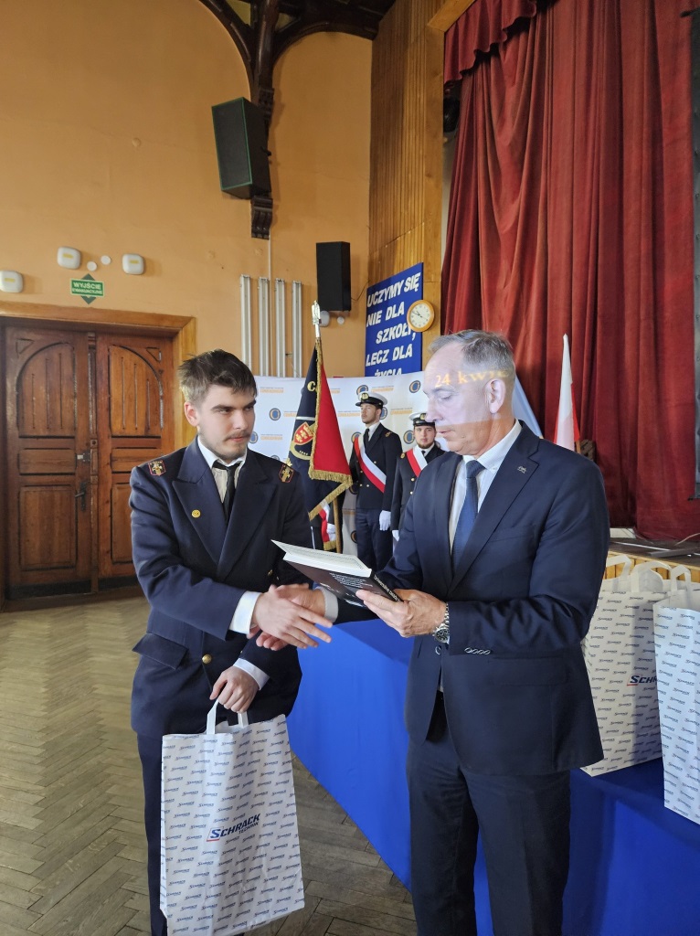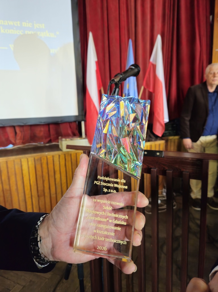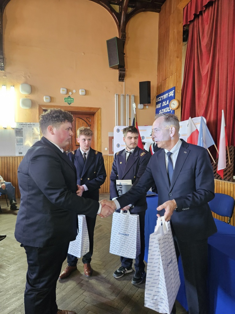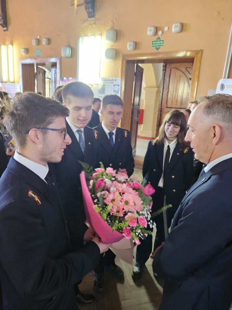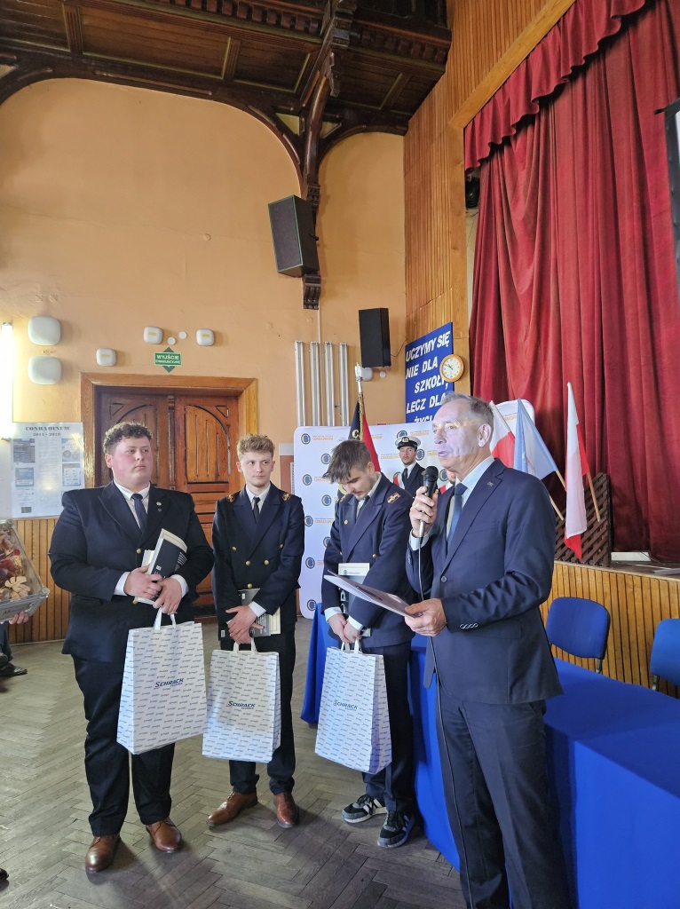 Wysłuchaliśmy przemówień: Pana Dyrektora Andrzeja Butowskiego, Przewodniczącej Rady Rodziców p. Joanny Ryngwelskiej, wystąpienia przewodniczącego Samorządu Szkolnego Marcela Fortasa z kl. 3A, tegorocznych absolwentów Igora Ryzy i Mateusza Chętnie z kl. 5 KE oraz przedstawicieli zaprzyjaznionych firm: p. Marka Marca Dyrektor HR PGZ Stocznia Wojenna, p. Michała Cisonia z Gdańskich Młynów oraz reprezentantow Koła Młodego Elektryka - Grzegorza Mikulskiego i założyciela p. Michała Złoczewskiego.
