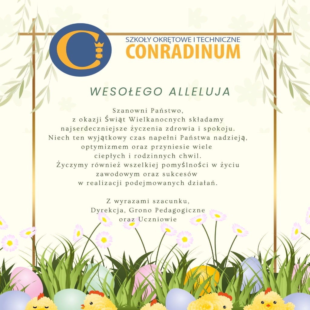 Życzenia wielkanocne - Szkoły Okrętowe i Ogólnokształcące CONRADINUM (XVIII Liceum Ogólnokształcące, Technikum nr 18, Branżowa Szkoła I stopnia nr 18)