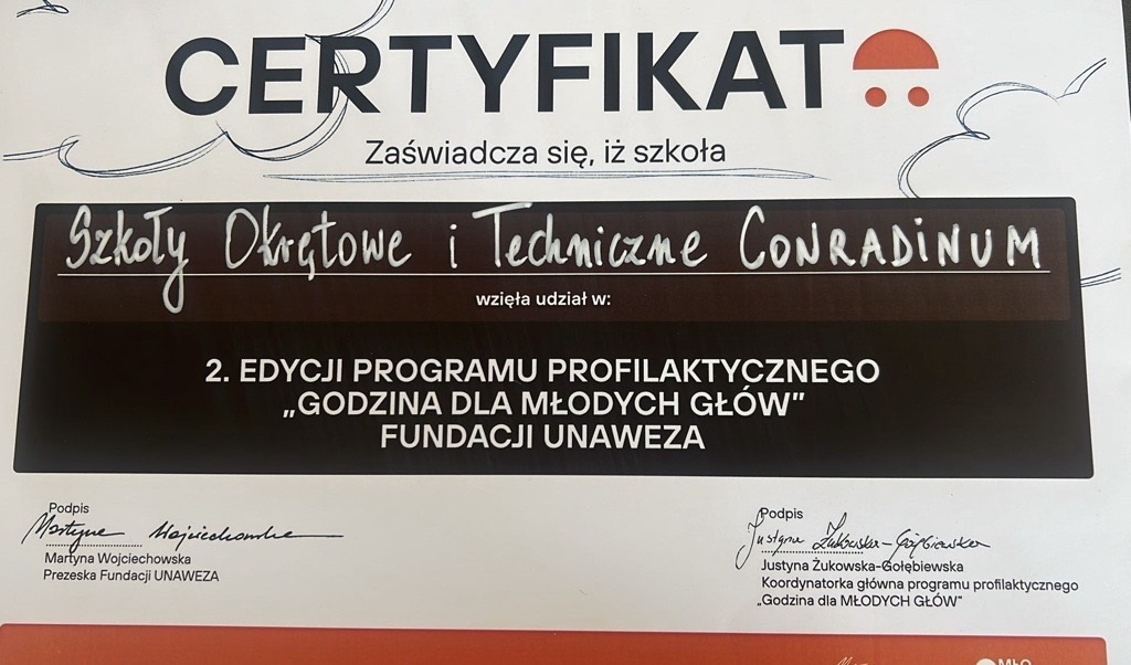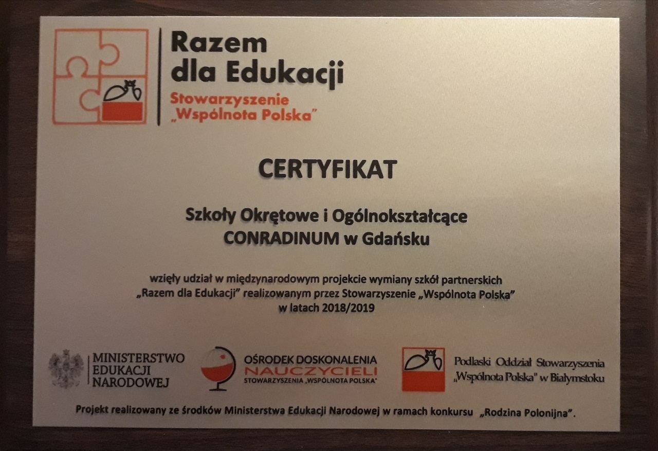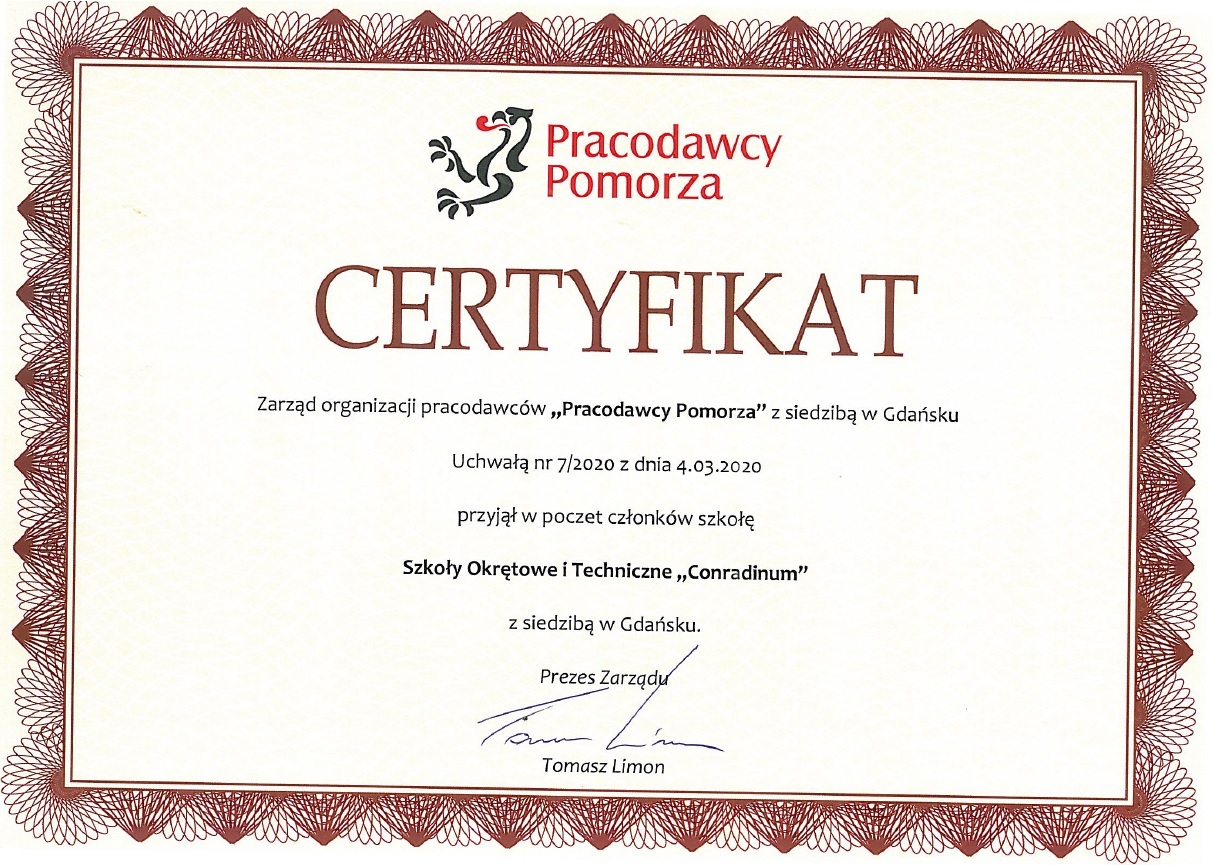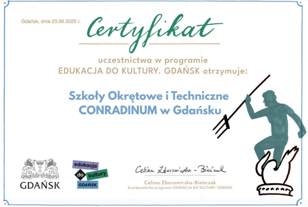 Dyplomy/podziękowania - Szkoły Okrętowe i Ogólnokształcące CONRADINUM (XVIII Liceum Ogólnokształcące, Technikum nr 18, Branżowa Szkoła I stopnia nr 18)